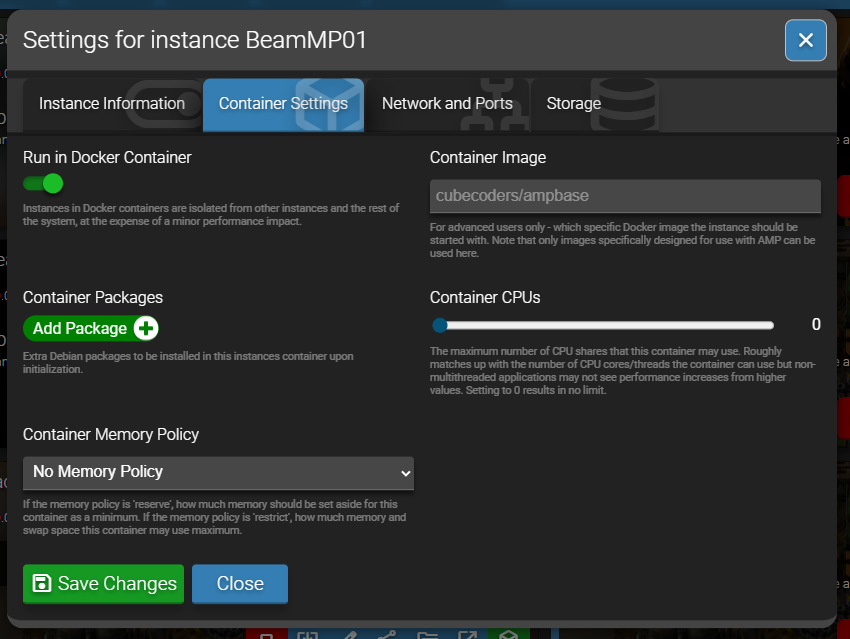 I’m starting the project of migrating our communities Arma Reforger servers from 3rd party hosted to our own VPS setup running AMP. I’m wondering if it is possible to define resource limits for an instance? For example we run a large multiplayer server that has heavy RAM and CPU requirements but then a couple of smaller scenarios that aren’t as hungry. Can I limit what each instance can use up or is it on me to only spool up a combination of instances each server can handle?
