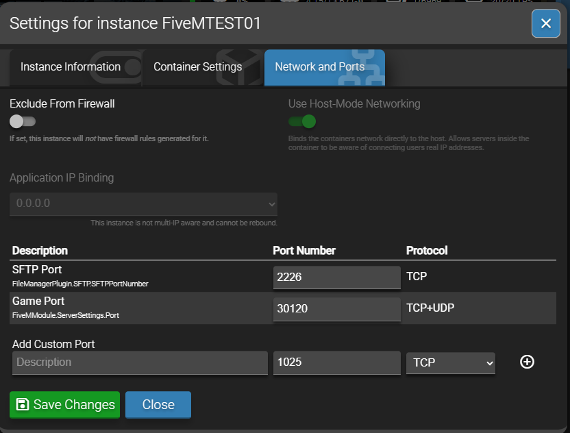 can not change IP of FiveM server in the File Manager.