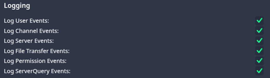 However, unlike the linked post, the logging of user sessions works just fine for me, once it is enabled on the TeamSpeak server. Example from AMP_Logs: