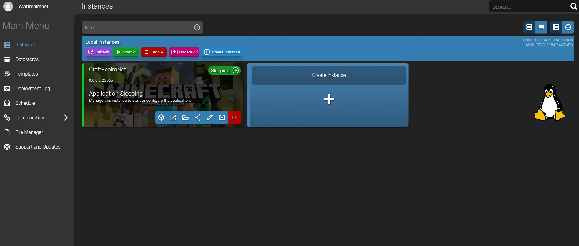Ubuntu 22.04.5 LTS (64-bit), 16GB RAM, AMD EPYC 9354P (4C/4T)