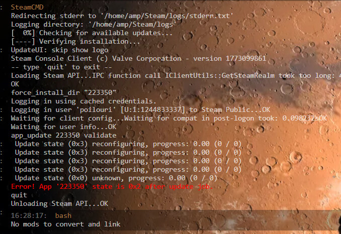 Redirecting stderr to '/home/amp/Steam/logs/stderr.txt'