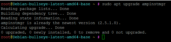 Then I tried to update via SSH with the command “sudo apt upgrade ampinstmgr” but it says it is uptodate